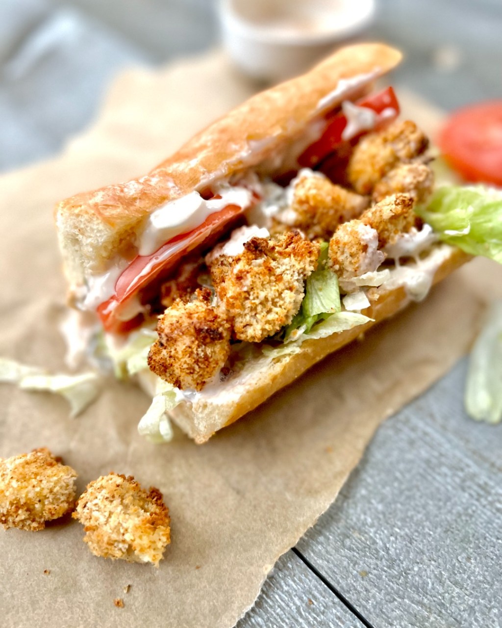 Crunchy cajun cauliflower bites and tangy vegan remoulade will fulfill your sandwich dreams!